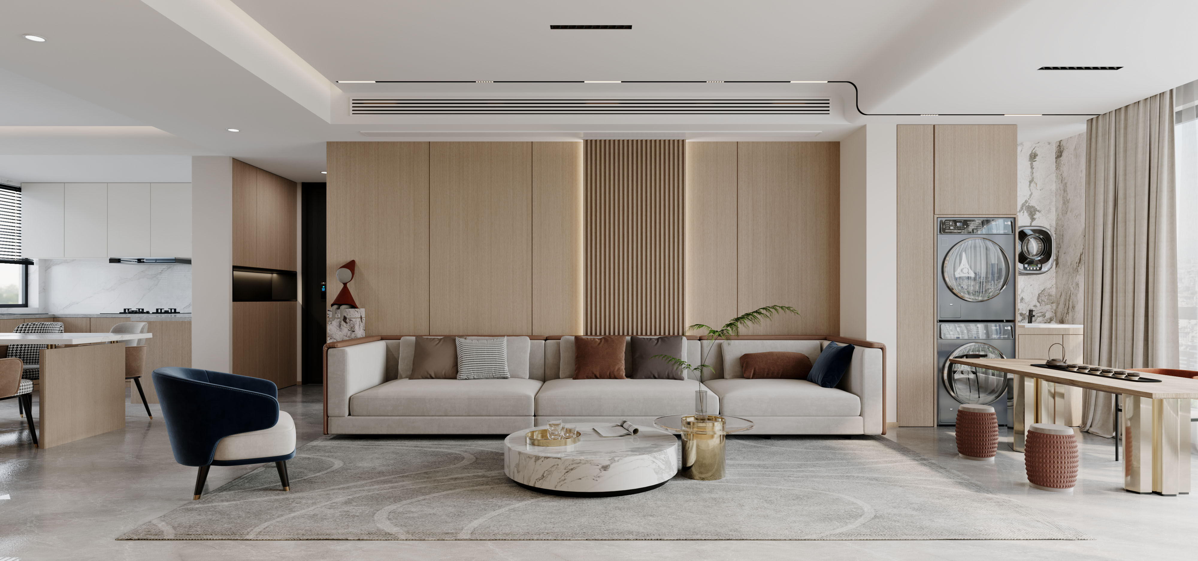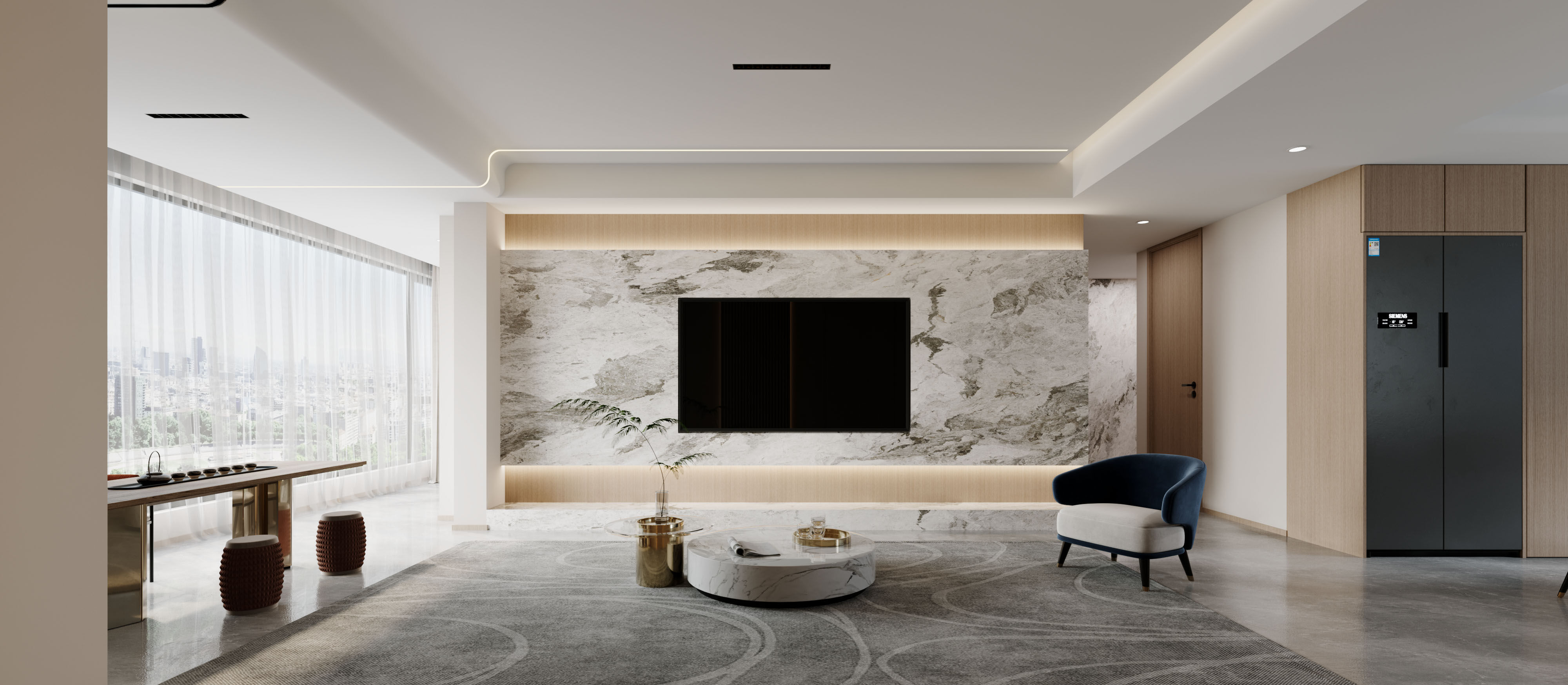 將陽臺打通+無主燈設計,打造134平時尚簡約宜居風