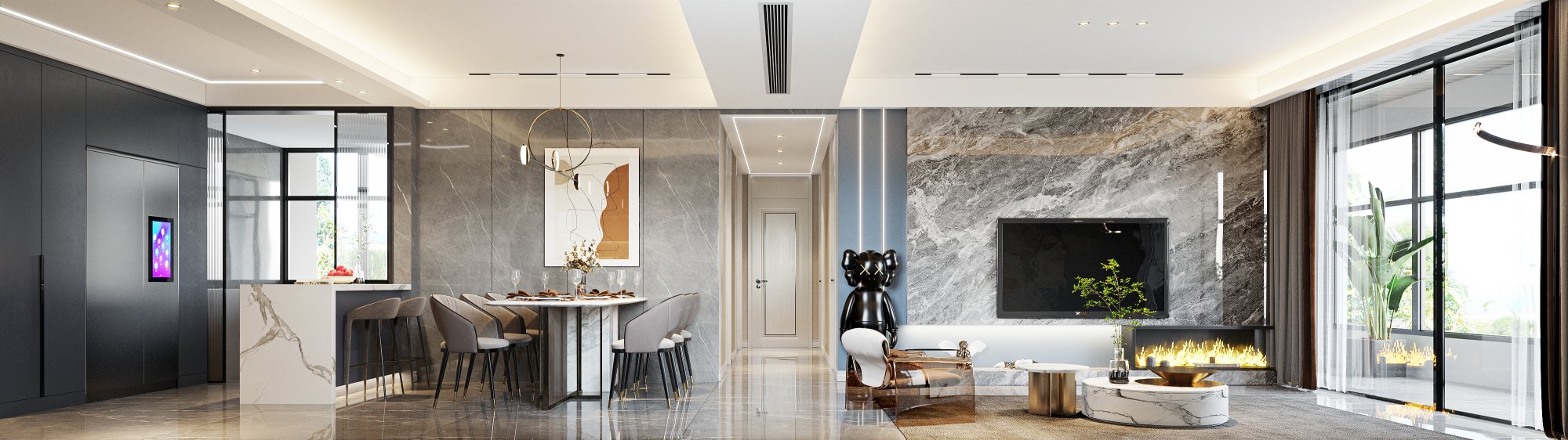無主燈設(shè)計,打造開闊通透簡約四居~